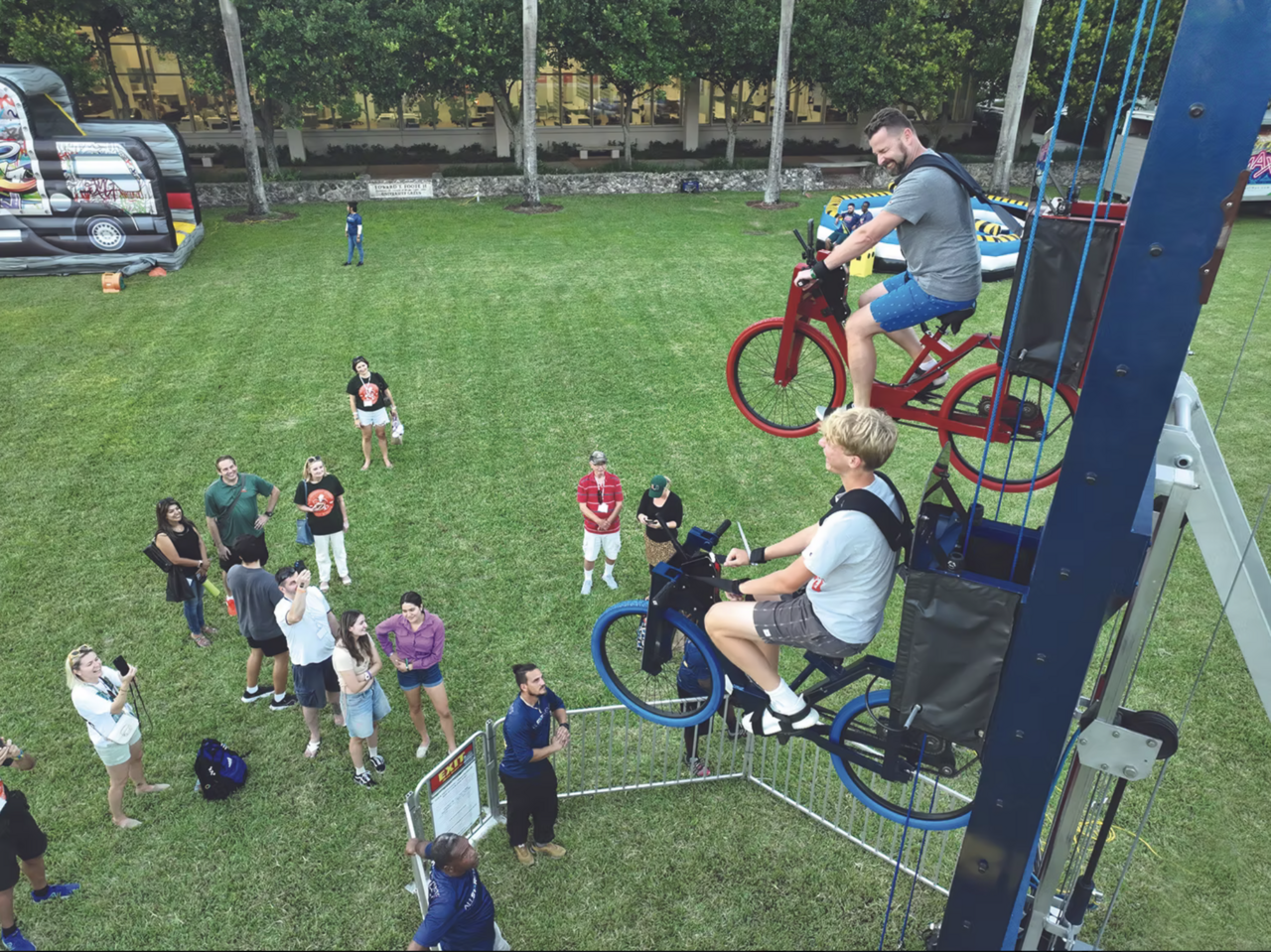 Vertical Bikes take cycling to thrilling new heights, sending riders up to 36 feet in the air as they pedal head-to-head. Two side-by-side stations let participants race to the top with built-in timers tracking every second. This attraction blends fitness, competition, and adrenaline into one unforgettable experience. Spectators love watching the race unfold, making it a natural crowd magnet. Bold, interactive, and visually exciting, Vertical Bikes are brand new for 2026.
