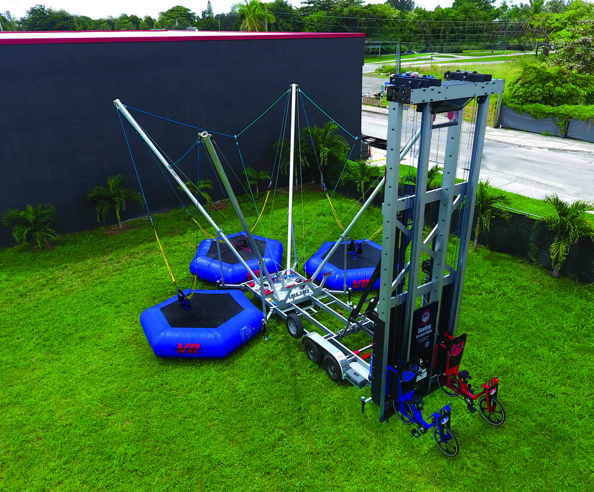 The Vertical Bikes with Bungee Combo delivers double the thrills in one action-packed attraction. Two riders race sky-high on vertical bikes while up to three additional participants bounce and soar on the bungee jump behind them. With space for up to five participants at once, the energy never stops. This combo creates nonstop motion, big reactions, and unforgettable visuals for both riders and spectators. A true show-stopper, this high-impact attraction is new for 2026 through Vertical Entertainment.